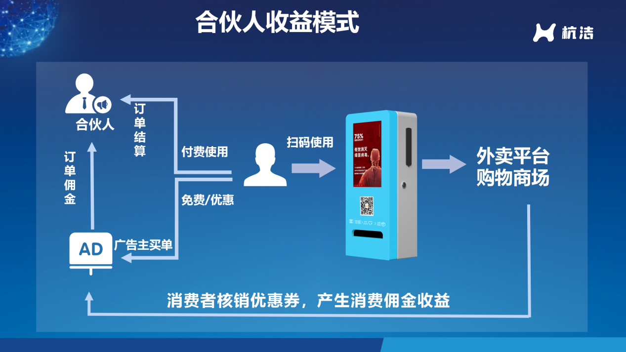 最后,也是最重要的一点,杭洁消毒湿巾机可以免费发放来抢占市场。比用户们自购消毒湿巾,更加地经济实惠。尤其是在“人流量大”、“细菌多”的地方,人们只要看到墙上这个“消毒湿巾免费发放机”,就一定会去免费领一片使用,为代理商带来巨量的补贴收益。等到1年半载,等用户们形成使用习惯,代理商彻底抢占本地市场后,也可以将“共享模式”改设为“无人零售”模式。