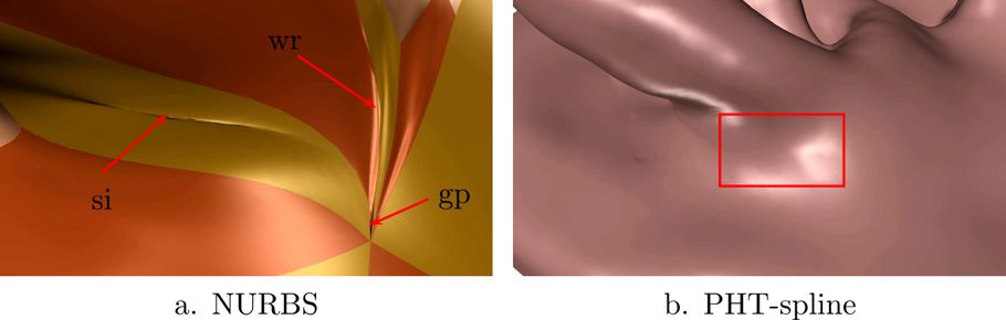 PHT-Splines仅使用NURBS四分之一的控制顶点