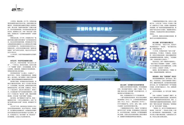 谋全局者要着眼全球,到中流击水,勇立潮头。今天的科茂,已成长为拥有数十项核心专利、覆盖多领域应用、技术国内领先的高新技术企业:其“化学循环新材料”年产能交破万吨级,合作客户遍及化工、汽车、消费品等多个行业头部企业。