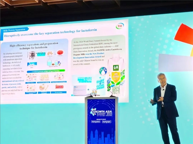 日前,亚洲领先的食品饮料行业盛会“2025 Growth Asia峰会”在新加坡隆重启幕,作为全球乳业五强、全球最具价值的乳制品品牌的全球乳业领军者,伊利股份受邀参会,伊利集团高级专家、国际乳业联合会(IDF)董事云战友发表了题为《创新驱动的蛋白质技术与乳品应用探索前沿》的主题演讲。