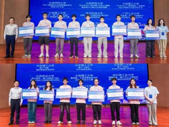 百度高校合作部副总监计湘婷(下右一)为获奖选手颁奖