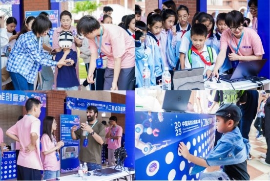 基于大赛作品的创意市集,亦吸引了数百名当地中小学生以及海南大学的国际留学生前来参观体验。孩子们在展位前驻足流连,留学生们则以竞赛观察员身份积极参与互动。一位小学生在体验后感慨:“哥哥姐姐们的创意很神奇,我以后也要像他们一样学习AI,用AI帮助更多人。”这场市集不仅是项目展示的平台,更成为AI科普与创新启蒙的生动课堂,与百度“培养1000万AI人才”的社会责任理念高度契合。