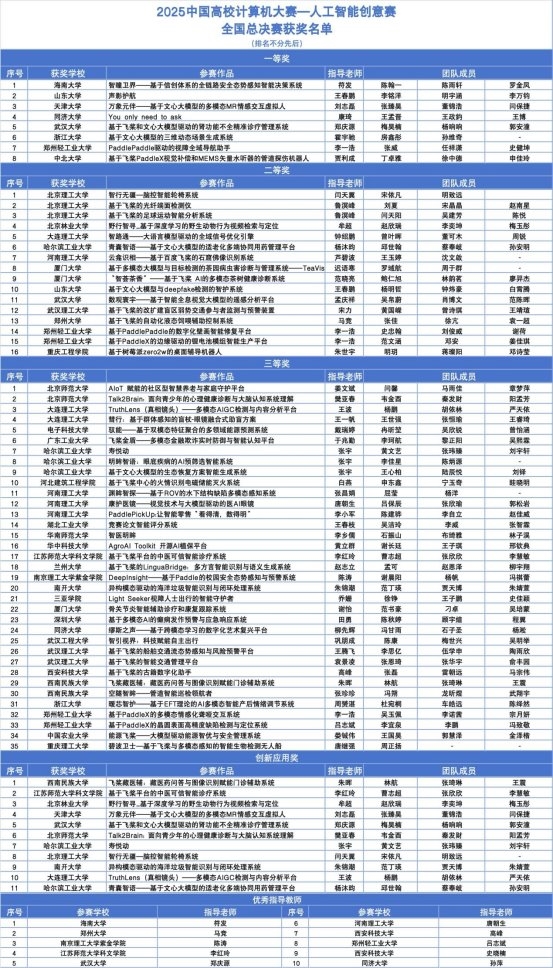 经过多轮严格的答辩和专家评委的评审,海南大学团队的“智瞳卫界“、山东大学团队的“声影护航”、天津大学团队的“万象元伴”、同济大学团队的“You only need to ask”、武汉大学团队的“基于飞桨和文心大模型驱动的肾功能不全精准诊疗管理系统”、浙江大学团队的“基于文心大模型的三维动态场景生成系统”、郑州轻工业大学团队“PaddlePaddle驱动的视障全域导航助手”、中北大学的“基于飞桨PaddleX视觉补偿和MEMS矢量水听器的管道探伤机器人”共8个项目荣获本届全国总决赛一等奖。此外,共16个项目荣获二等奖,35个项目荣获三等奖。