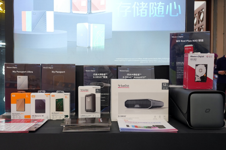既然是影像展,除了相机和外设,E心科技的展区还携手多位存储行业的伙伴一同登台。西部数据带来了My Passport系列外置存储硬盘。其中Ultra系列专为影像行业用户打造。它具有大容量,高性能,高安全等特性。SanDisk闪迪则展出了闪迪大师极客存储系列,其中G-DRIVE硬盘采用了经久耐用设计,防震抗跌落,是经常外出拍摄用户的高端之选。