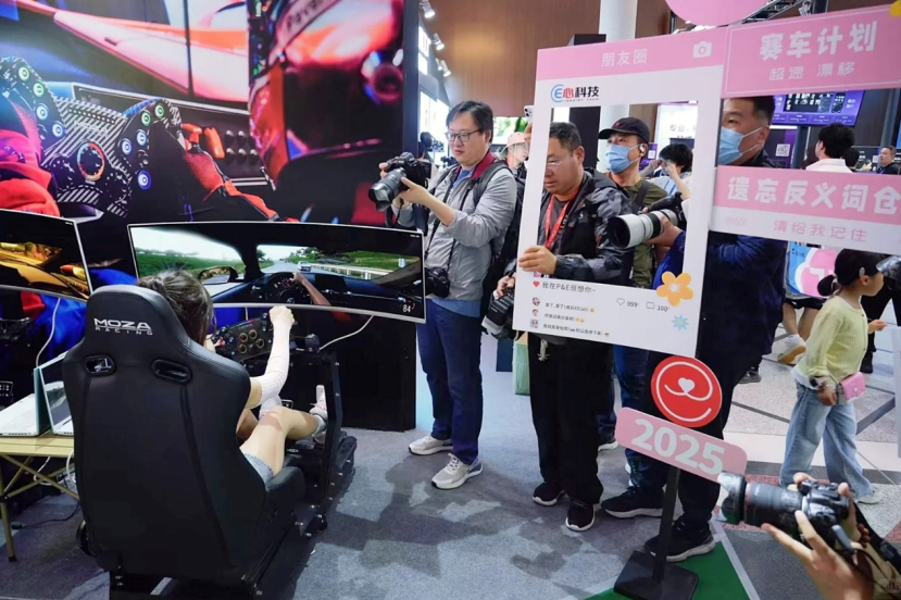 展位的另一侧,我们为广大游戏玩家准备了《地平线5》赛车电竞体验。现场搭建了来自MOZA魔爪的专业赛车模拟器,以R3伺服直驱套装为基础、包括ES Lite方向盘、踏板,以及赛车桶椅组成的框体。影友们能感受到真实的,淋漓畅快的赛车体验。