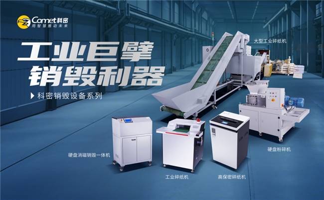 深耕涉密销毁领域多年的科密,早就把“零残留、不可逆”的销毁标准刻进了产品的DNA。科密目前近40款获得国家保密测评中心认证的销毁设备,几乎覆盖了企业所有的涉密载体:国密一级认证的科密碎纸机,除了能把纸张碾成≤1×2mm的超细碎片,彻底断了拼接复原的可能,还能轻松应对企业日常的海量碎纸需求;针对硬盘、U盘这类磁介质,科密的消磁销毁一体机能实现“先消磁、后粉碎”的双重工序,先把数据彻底清除,再做物理粉碎,从技术上杜绝数据恢复的可能;而大型政企和工业场景的大批量销毁需求,也有工业级粉碎机等来满足,既保证彻底销毁效果,又能大幅提升工作效率,适配高负荷的专业销毁场景。