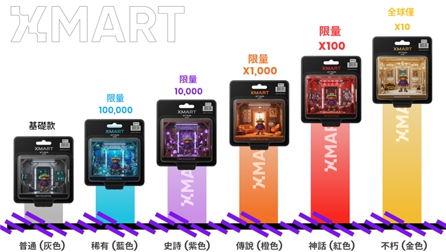 XMART构建了一个极致稀缺的金字塔。普通款限量10万个,稀有款1万个,史诗款1000个,传说款100个,神话款10个,不朽款全球仅10个,每个等级都有明确的市场预期和收藏价值。