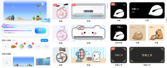 创意小组件库:集成桌面水族箱、打工人时钟、敲木鱼、空调、风扇等趣味互动元素,在桌面就可以享受养鱼的乐趣,心烦了还可以敲敲木鱼静心,翻开答案之书解答心中的疑惑、这些创意的壁纸、小组件,能够满足不同用户的需求。