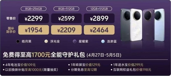 最后,vivo Y600 Pro已在迪信通火热开售,叠加国补后,到手价1954元起,5月5日前购机送至高1700元全能守护礼包,还可享赠送专属礼包+3个月碎屏保障服务等权益。想要入手的朋友,可前往【迪信通官方商城】微信小程序或迪信通线下门店体验购买。
