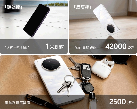 除了越级续航表现,vivo Y600 Pro在耐用性上也下足了功夫。该机机身采用多重装甲抗摔架构,能逐级缓冲外部冲击力,搭配旗舰级金刚盾屏幕玻璃,通过10种平整路面1m抗摔测试,有效规避日常手滑跌落带来的损伤。在防尘防水方面,该机通过内外关键器件的三层密封设计,实现了IP68+IP69级硬核防尘防水,能抵御27种液体泼溅,暴雨淋溅、短时冲水等场景均可正常使用,同时还通过了中国质量认证中心耐久抗摔防水认证,全方位守护机身安全,户外、日常场景使用都更放心。